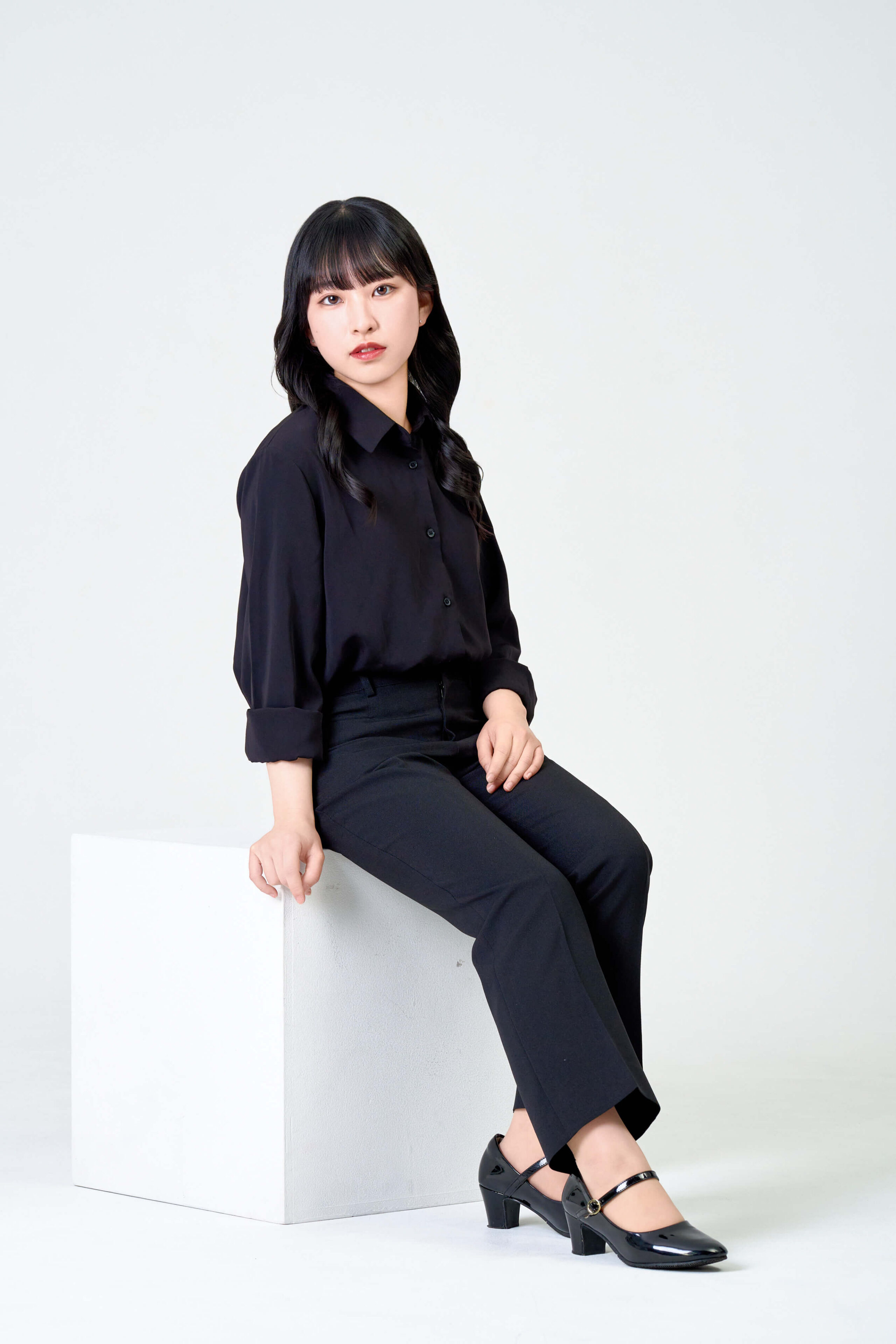 宣材写真の撮影です。ご希望に合わせクールなイメージを中心に撮影しました。手先や足先のポージングにも細かくこだわっています。バストアップでは表情や顔の角度を丁寧に提案させていただき、洗練された一枚に仕上げています。