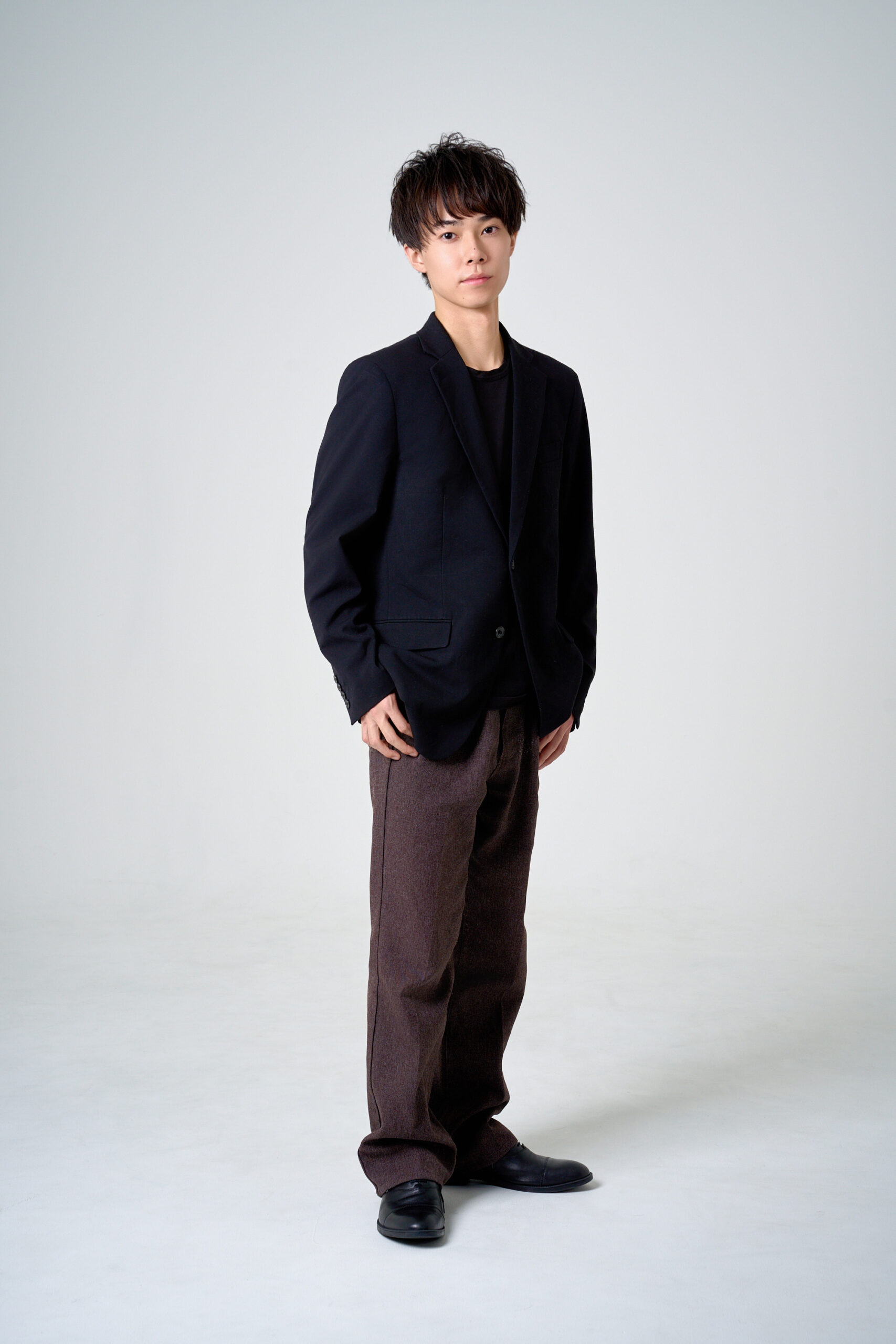 宣材写真の撮影です。クールな印象を目指し、なだらかな陰影が出るようにライティングを設計しました。シャシンクでは、被写体の表情だけでなく、ファッションのディテールまで際立つようにライティングをご提案いたします。