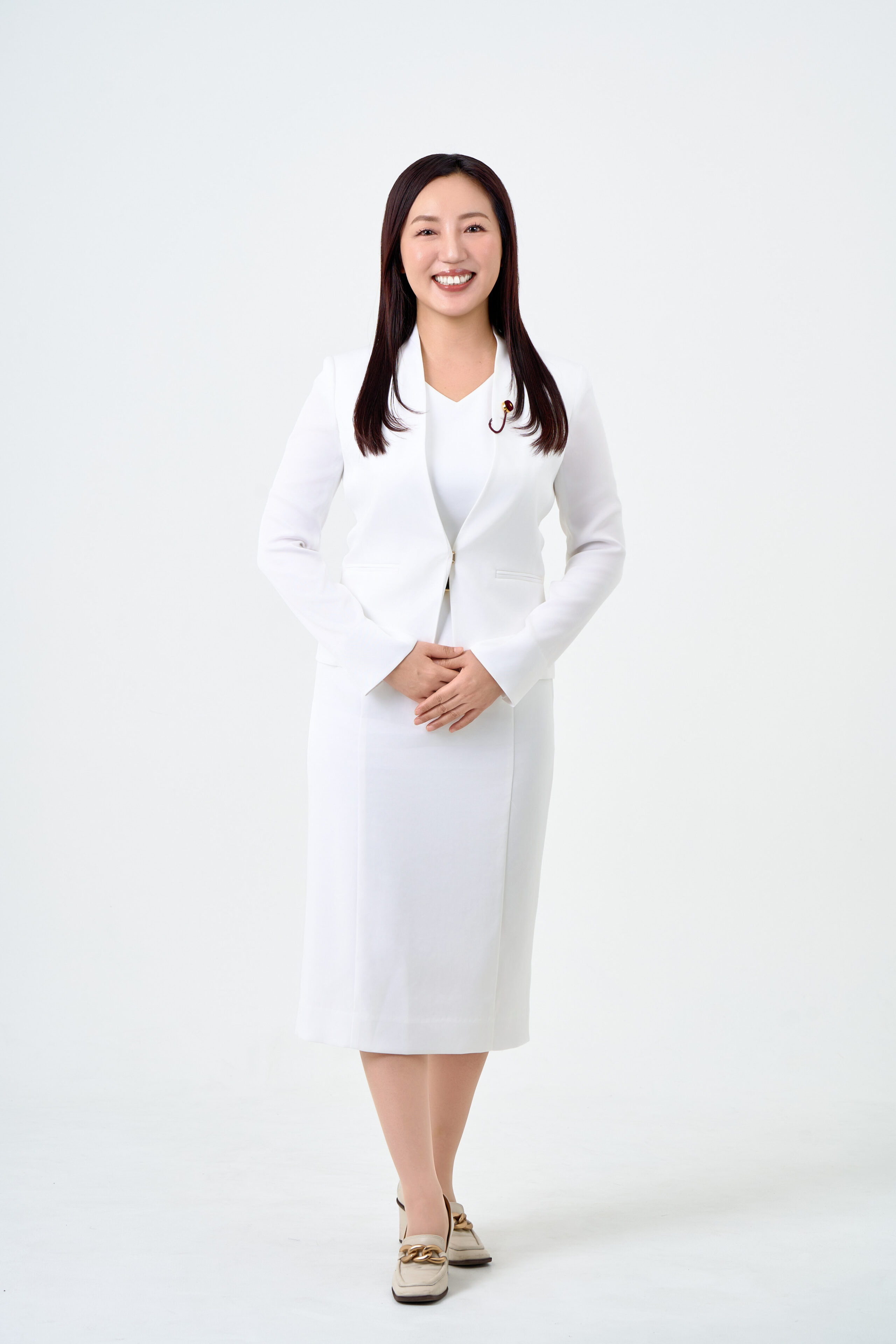 政治家の方の宣材写真の撮影です。明るい笑顔とシンプルなポージングに、フレッシュなライティングで清潔感と親しみやすさを演出し、白背景で力強さと美しい印象を際立たせました。