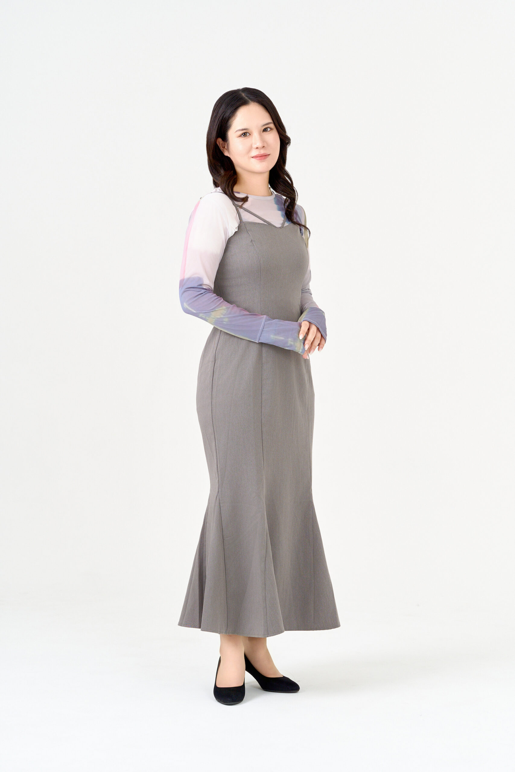 立体感のあるベースメイクと明るめのリップで、女性らしい華やかさを演出しました。顔立ちに合わせて線の長さや曲線を丁寧に調整し、自然に引き立つ仕上がりに。ヘアは大人っぽい印象のくびれ巻きでまとめ、上品で落ち着きのある雰囲気を演出しています。