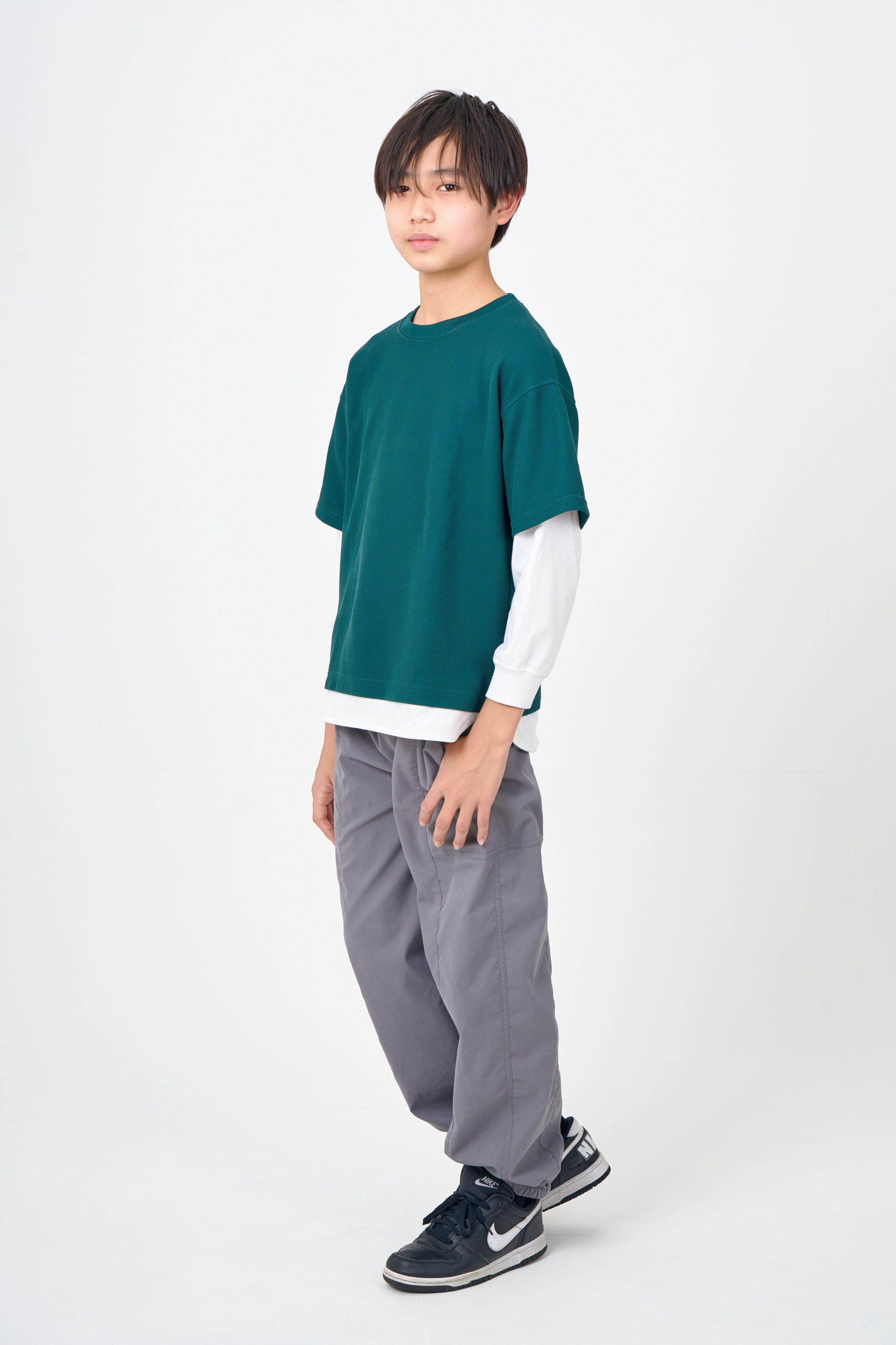 宣材写真の撮影です。お子さんの撮影では、ポージングも細かく指導し、手先や足先まで丁寧に調整しながら進めています。洗練されたライティングを使用し、自然な魅力が伝わる一枚に仕上げています
