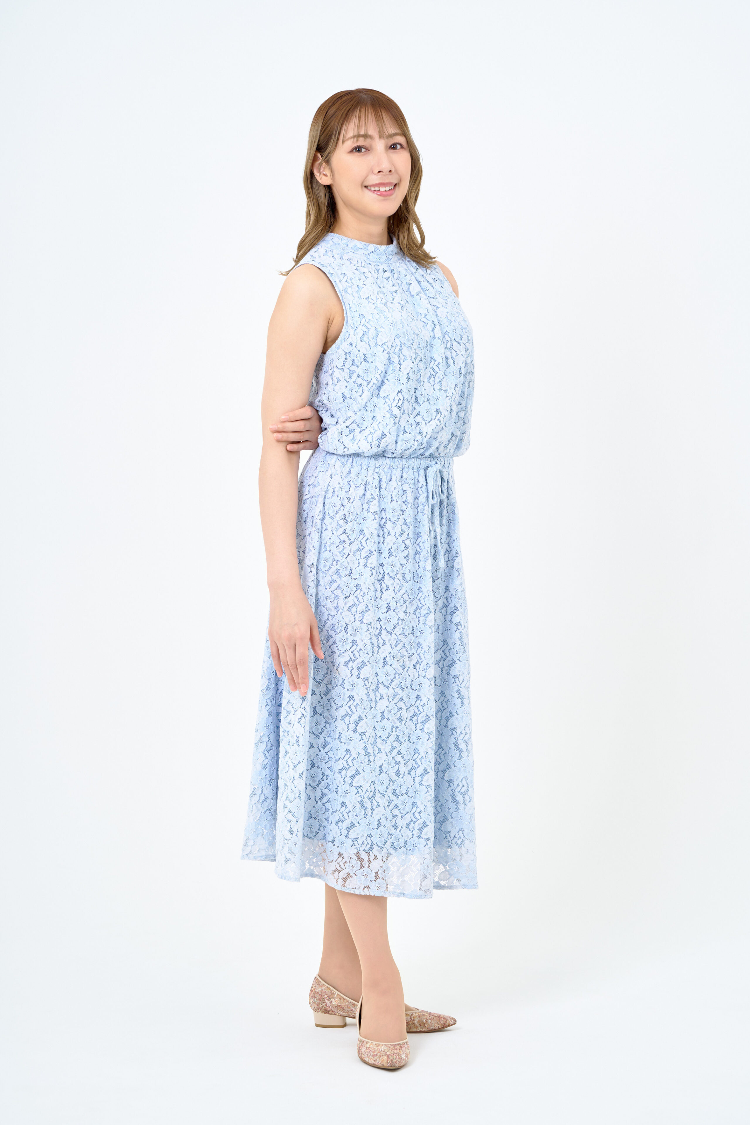 メイクやヘアスタイルは上品らを意識し、肌を明るく整え、髪は全体を巻いて艶っぽさもプラスしています。