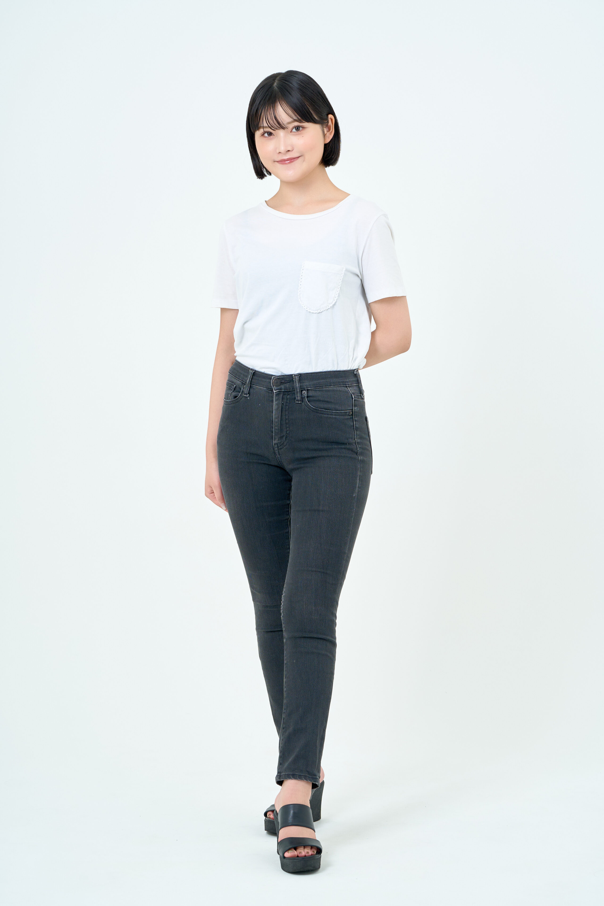 宣材写真の撮影です。柔らかなライティングで自然な美しさを引き出し、シンプルな背景で衣装と表情を引き立てます。