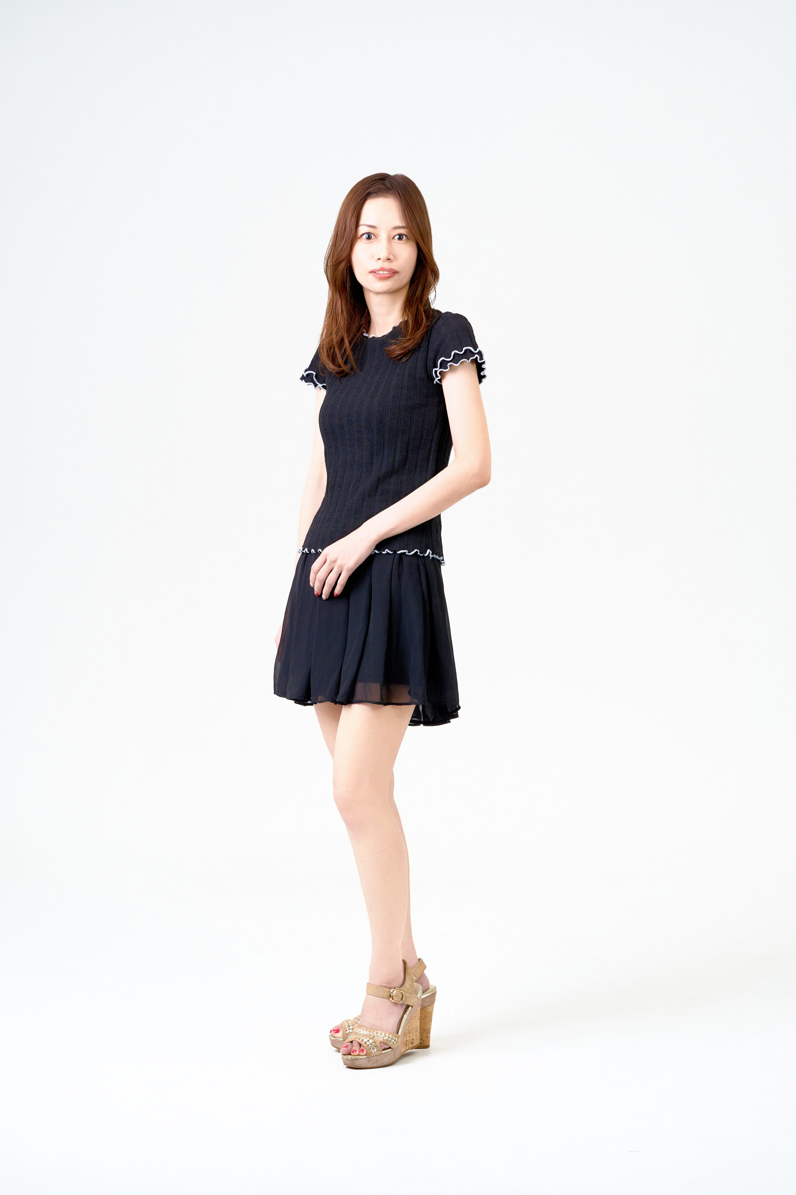 パーツの魅力を活かしながら全体のバランスを整え、自然に盛れるナチュラルメイクに仕上げました。肌なじみの良い色味で、素顔の延長のような自然な美しさを演出しています。ヘアは顔まわりにゆるくカールを加え、やわらかく落ち着いた雰囲気に整えました。