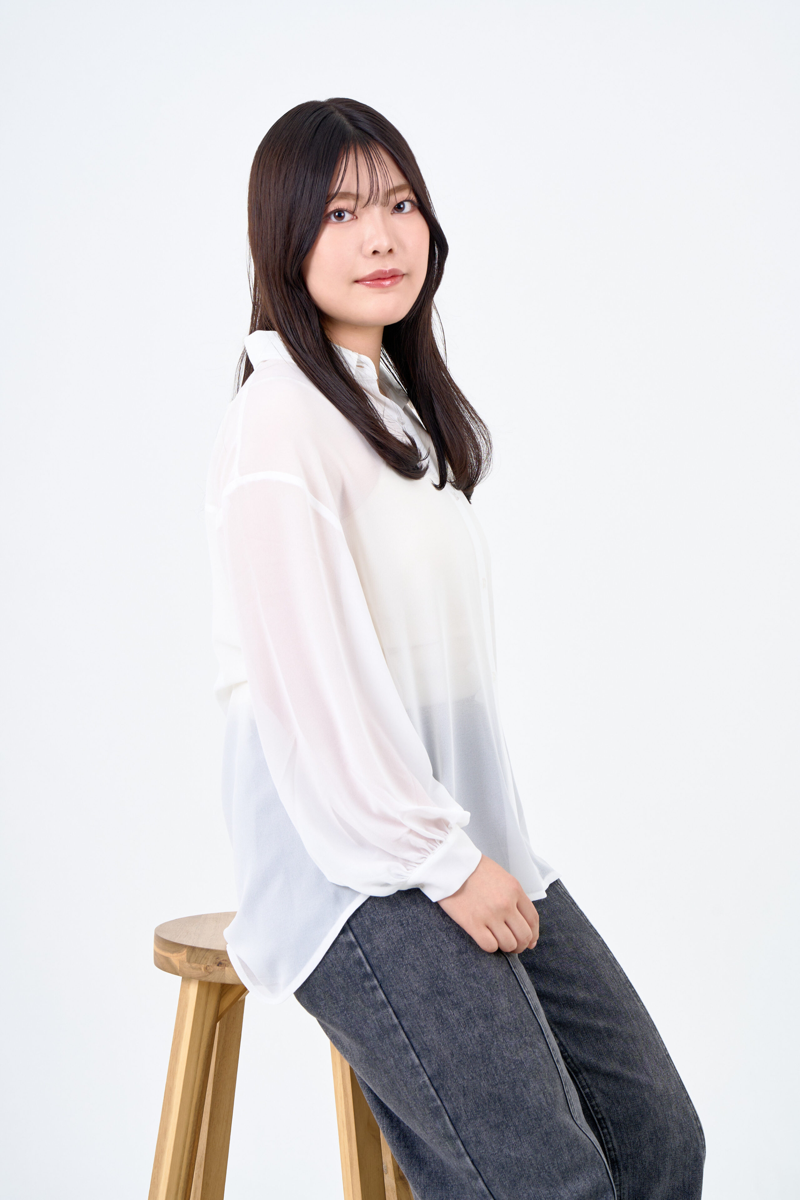 宣材写真の撮影です。明るくシンプルな白背景で落ち着いた表情がしっかり伝わる一枚に。