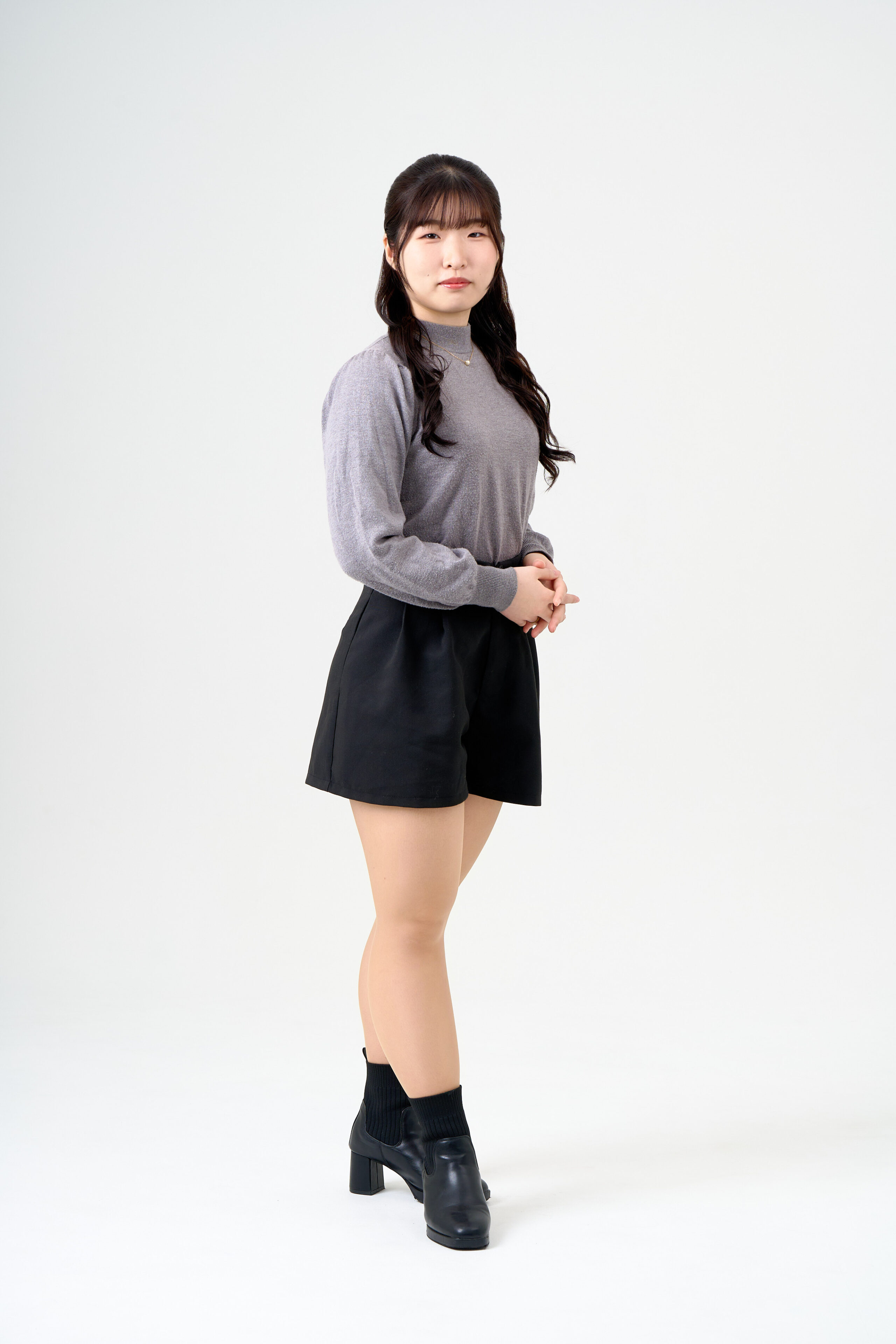 宣材写真の撮影です。シンプルなライティングで落ち着いた印象を作り出し、自然な魅力を表現しました。衣装に合わせ、個性を際立たせた写真の撮影もお任せください。