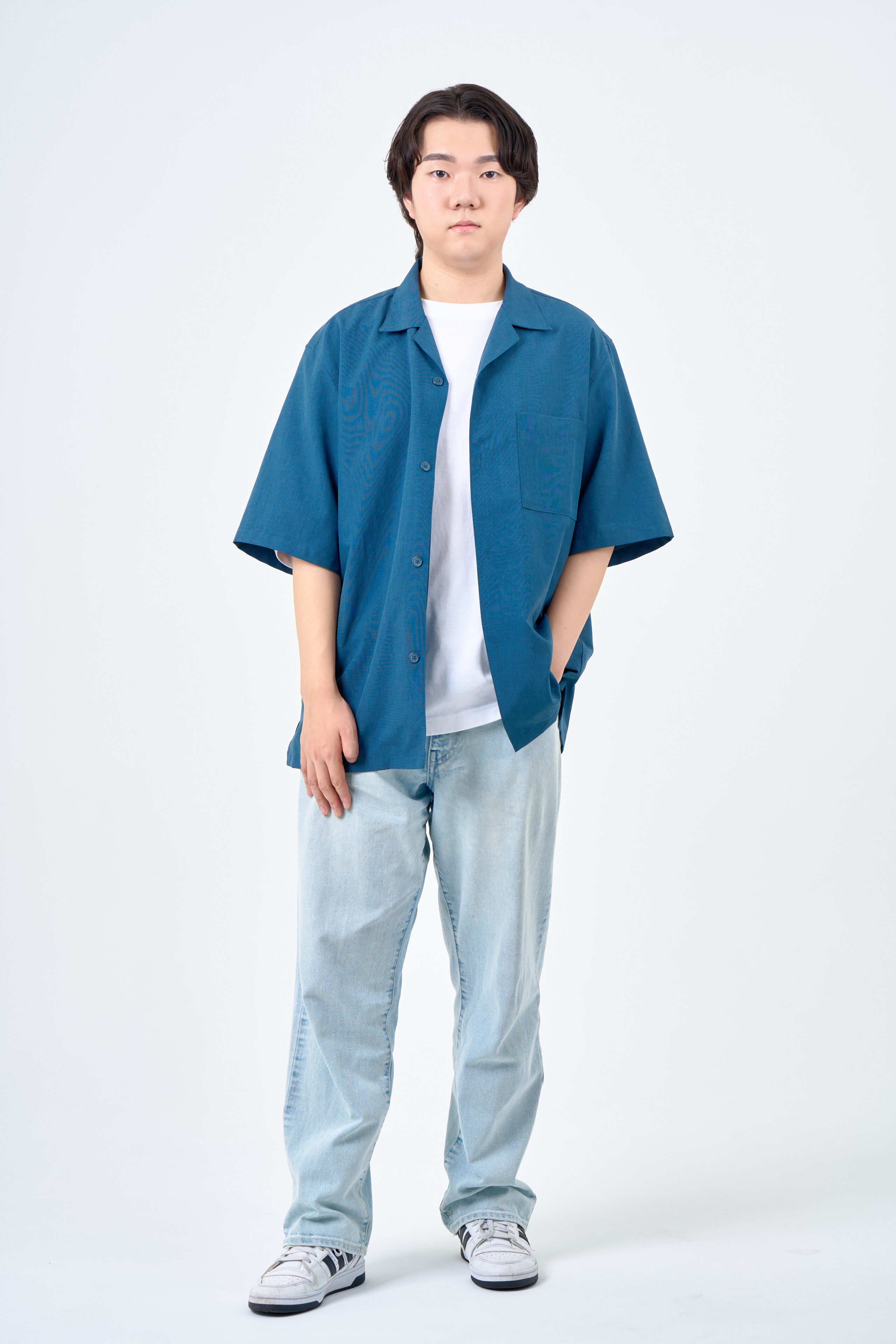 肌のトーンを明るく整え、眉毛はふんわり描き、柔らかい印象に。ヘアスタイルは前髪を立ち上げて男らしさを強調し、全体的に落ち着いた雰囲気に仕上げました。