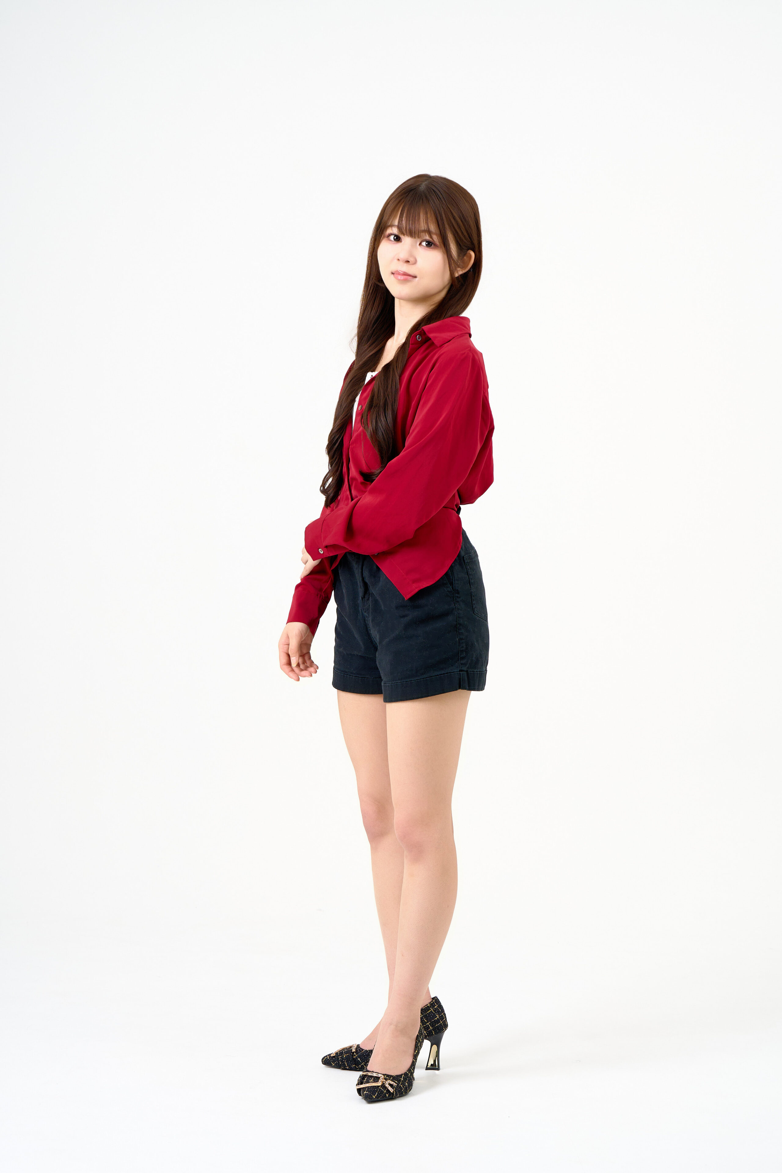 宣材写真の撮影です。かわいさをコンセプトに、白背景で丁寧にライティングを施しました。艶っぽさを感じさせる雰囲気も演出し、洗練された一枚に仕上げています。