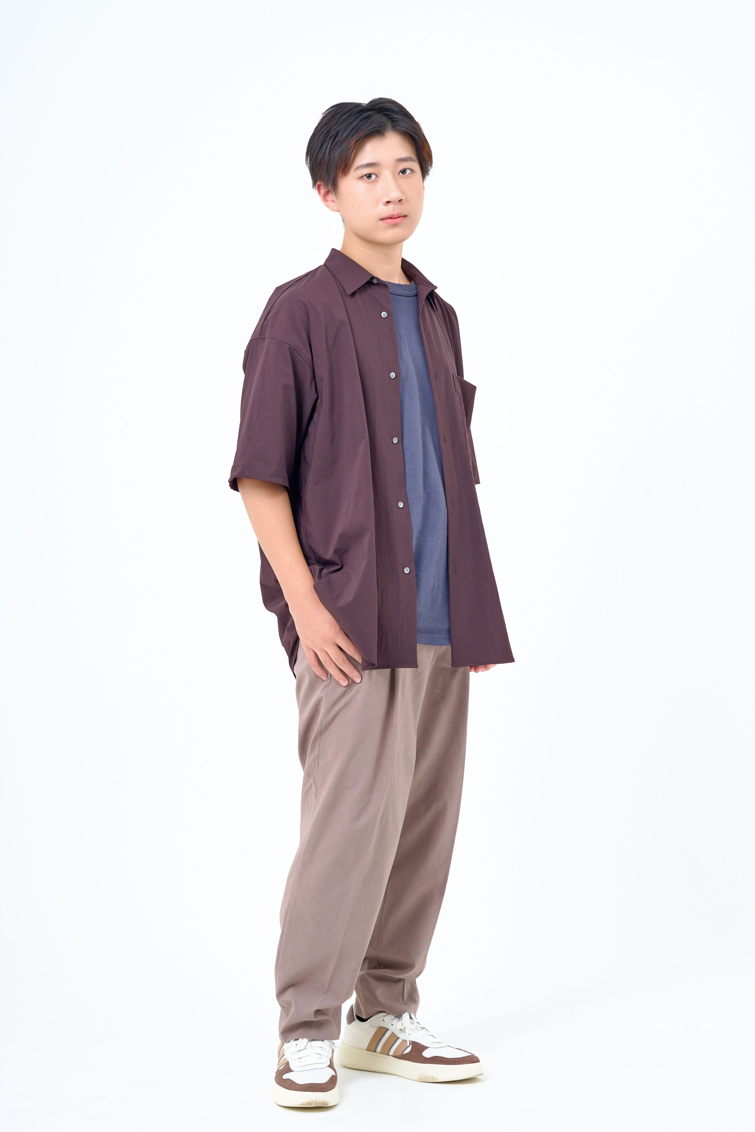 宣材写真の撮影です。洗練された雰囲気を強調するライティングにこだわり、シンプルながらも存在感のある一枚を目指します。