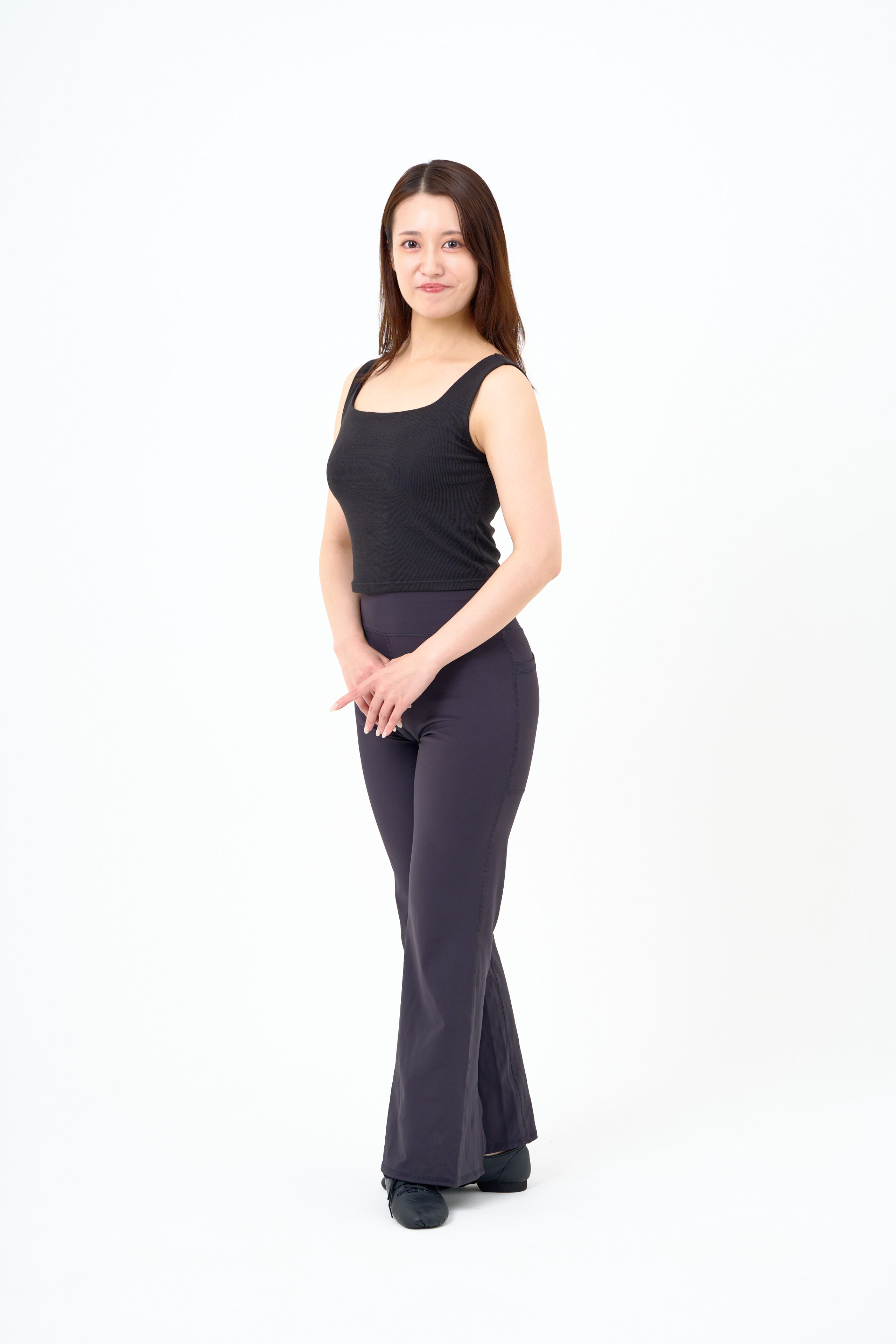 宣材写真の撮影です。健康的な魅力を最大限に引き出すため、白背景を活かしたフレッシュで定番なライティングを使用しました。美しいポーズをさらに品格のある印象に仕上げました。