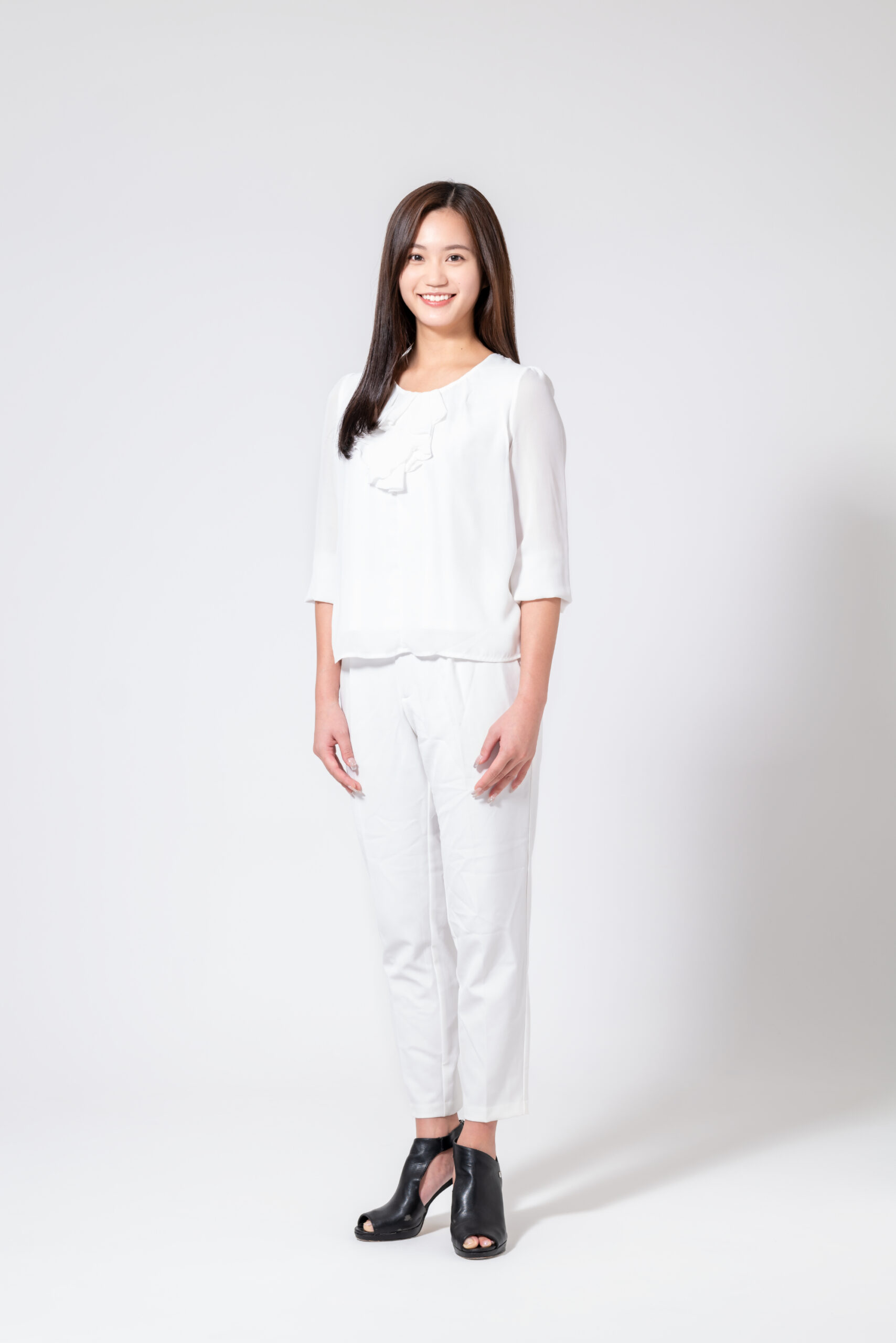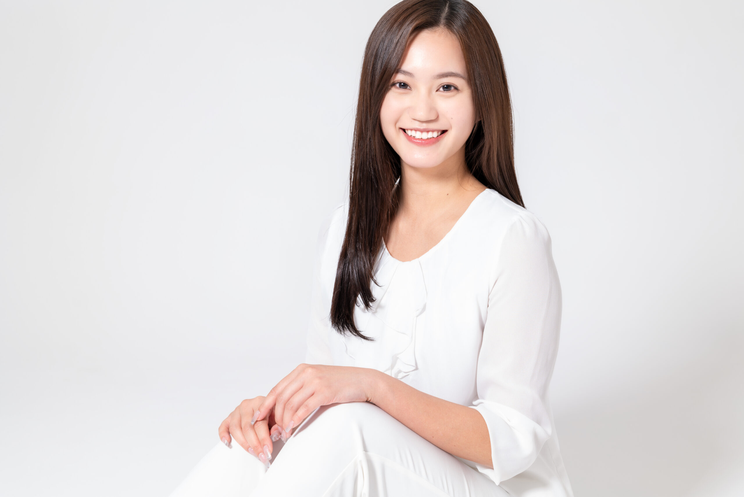 女優向けの宣材撮影です。明るい人柄を伝えるために、自然な笑顔で魅力を引き出しました。