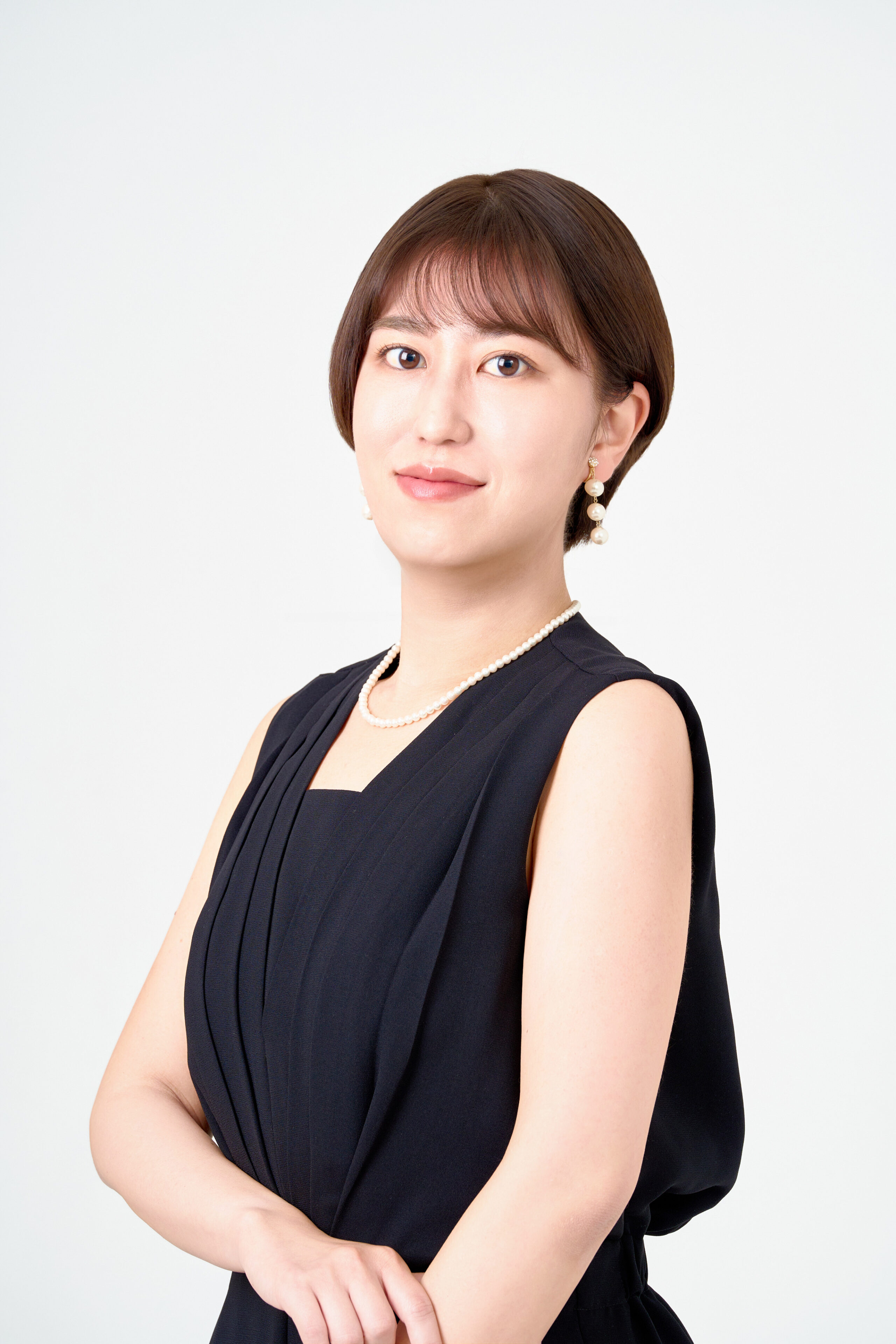 宣材写真の撮影です。華やかさをコンセプトに、白背景で丁寧にライティングを施しました。艶っぽさを感じさせる雰囲気も演出し、洗練された一枚に仕上げています。