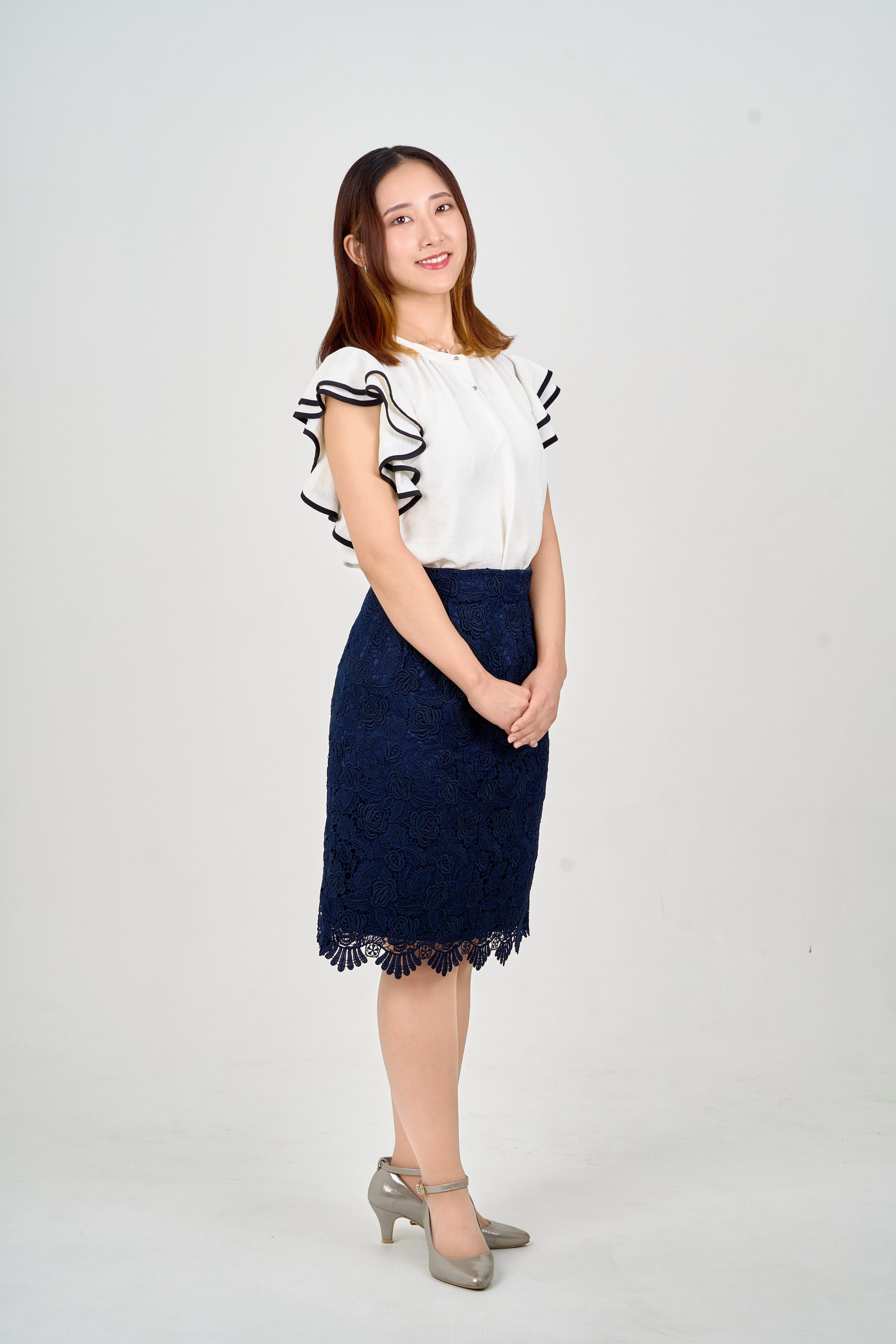 宣材写真の撮影です。フェミニンな雰囲気を大切にしながら、ライティングはご本人の人柄や衣装に合わせて調整しました。自然な輝きが際立つよう、細やかな調整を重ねながら、その方の魅力を最大限に引き出しています。