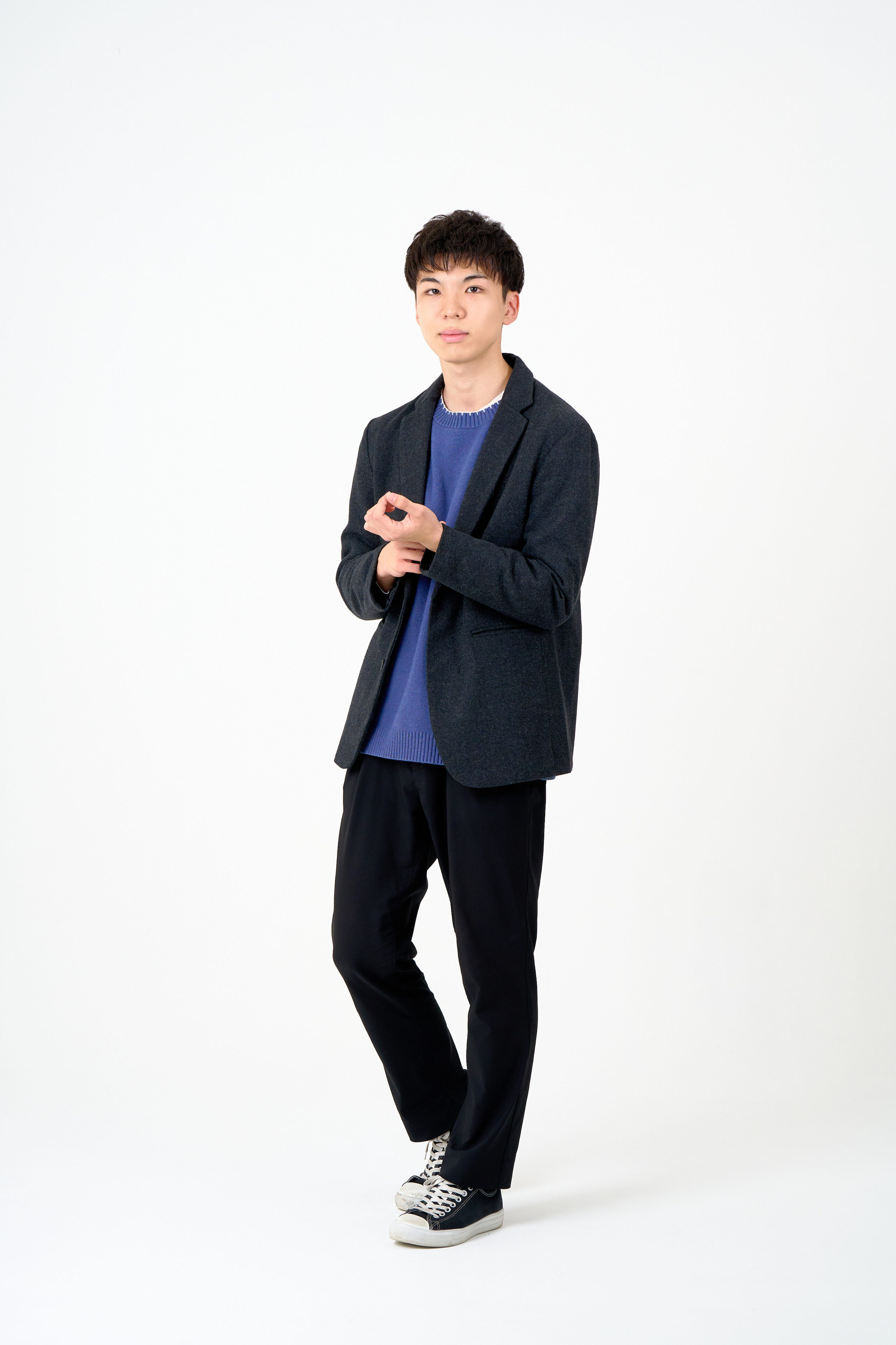 宣材写真の撮影です。白い背景により人物を引き立たせ、シンプルながら洗練された仕上がりとなりました。撮影の目的に合わせて、一人ひとりそれぞれの魅力を最大限に引き出します。