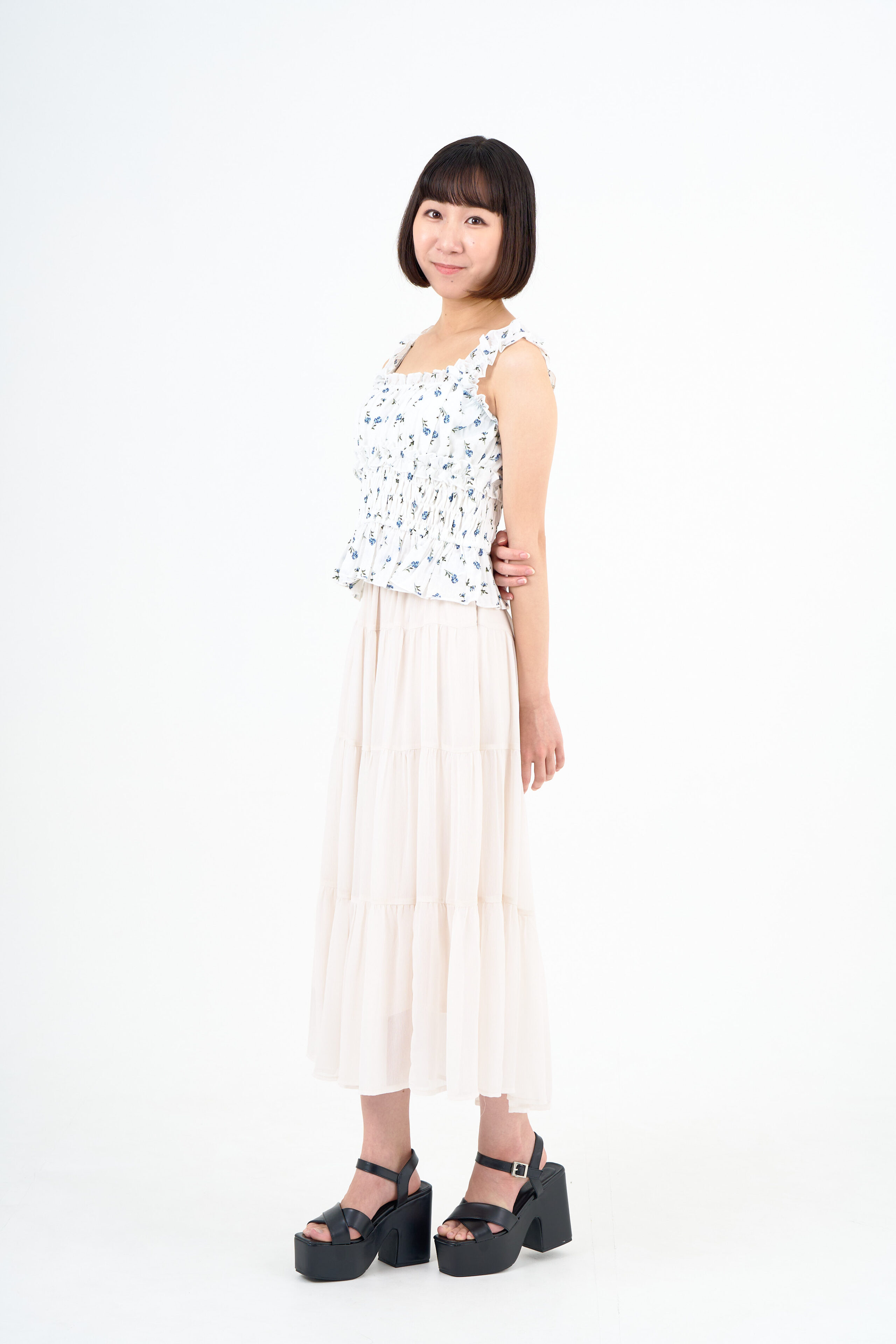 宣材写真の撮影です。可愛らしさをコンセプトに、シンプルなライティング自然な魅力を表現しました。衣装に合わせ、個性を際立たせた写真の撮影もお任せください。