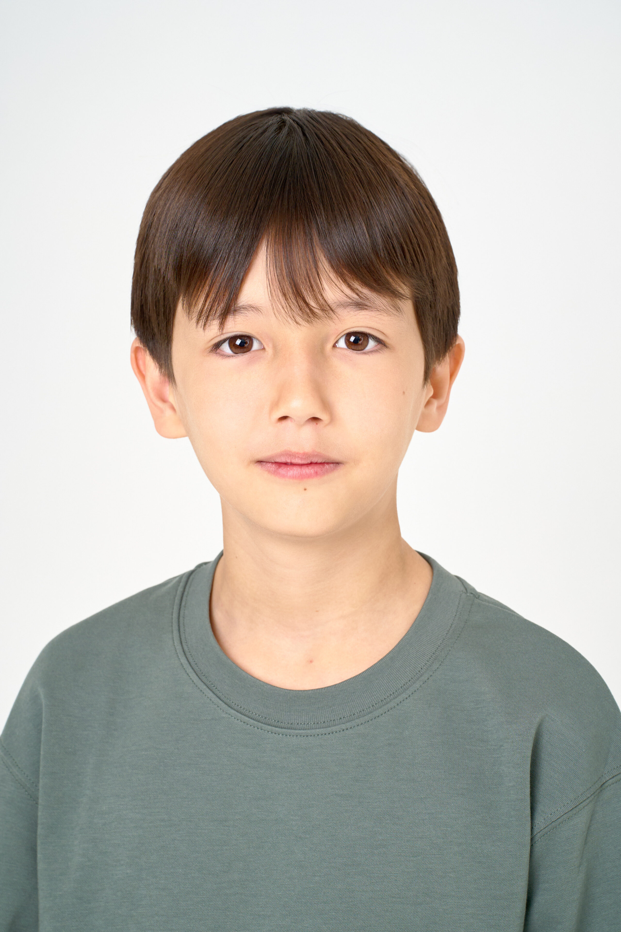 宣材写真の撮影です。透明感を強調するライティングにこだわり、フレッシュな印象も取り入れ、子供らしさを引き出し、シンプルながらも存在感のある一枚を目指します。