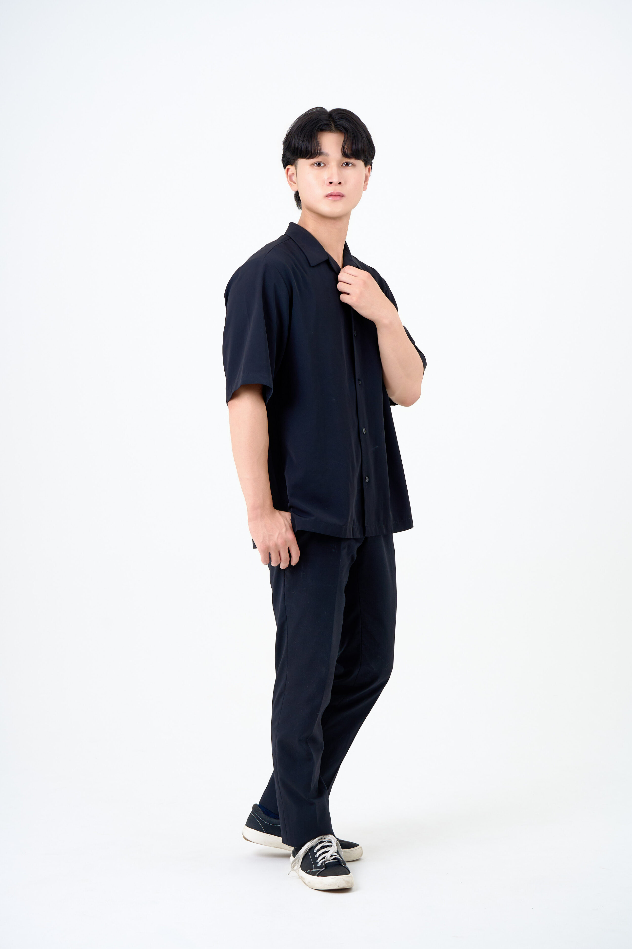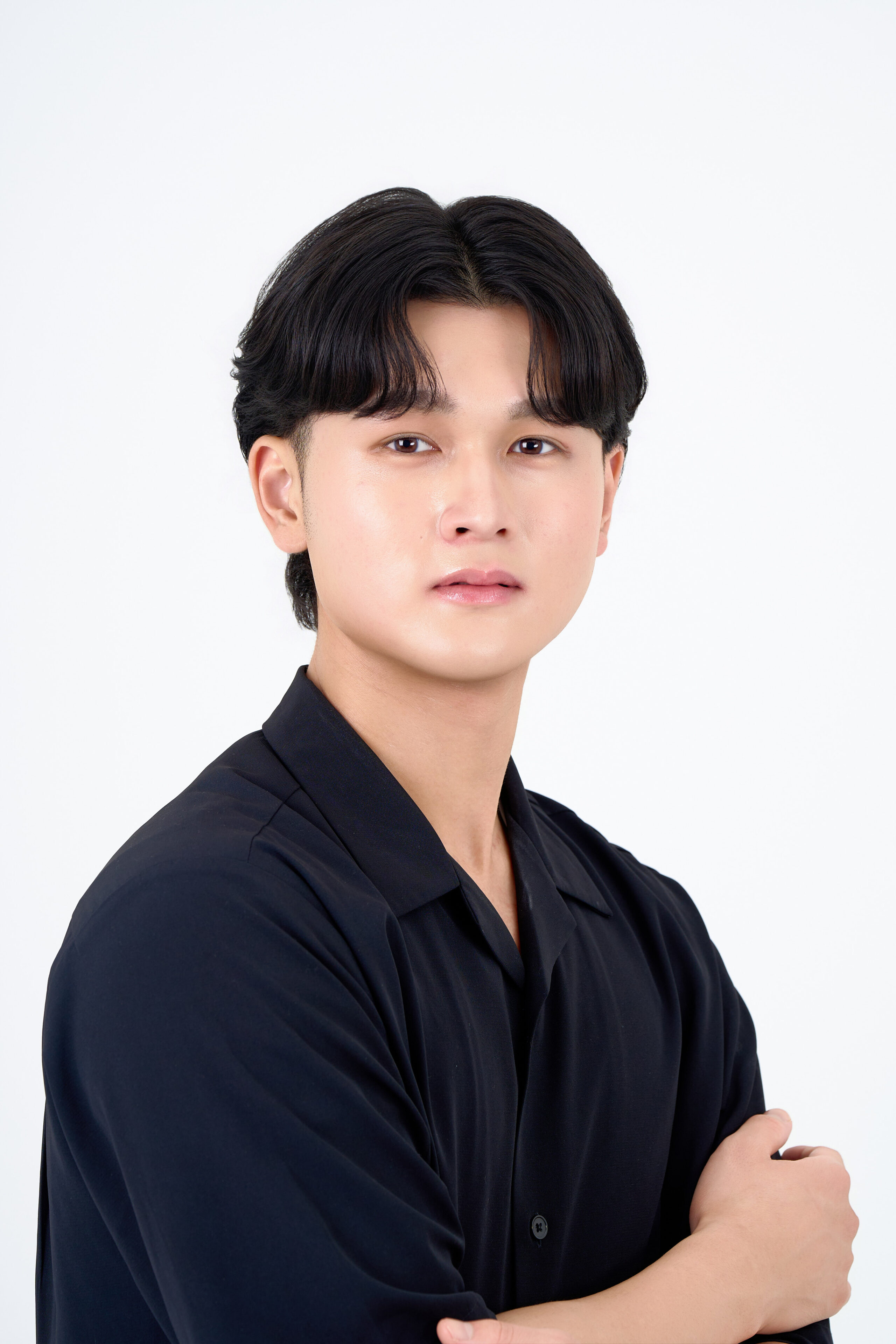 宣材写真の撮影です。洗練された雰囲気を強調するライティングにこだわり、シンプルながらも存在感のある一枚を目指します。