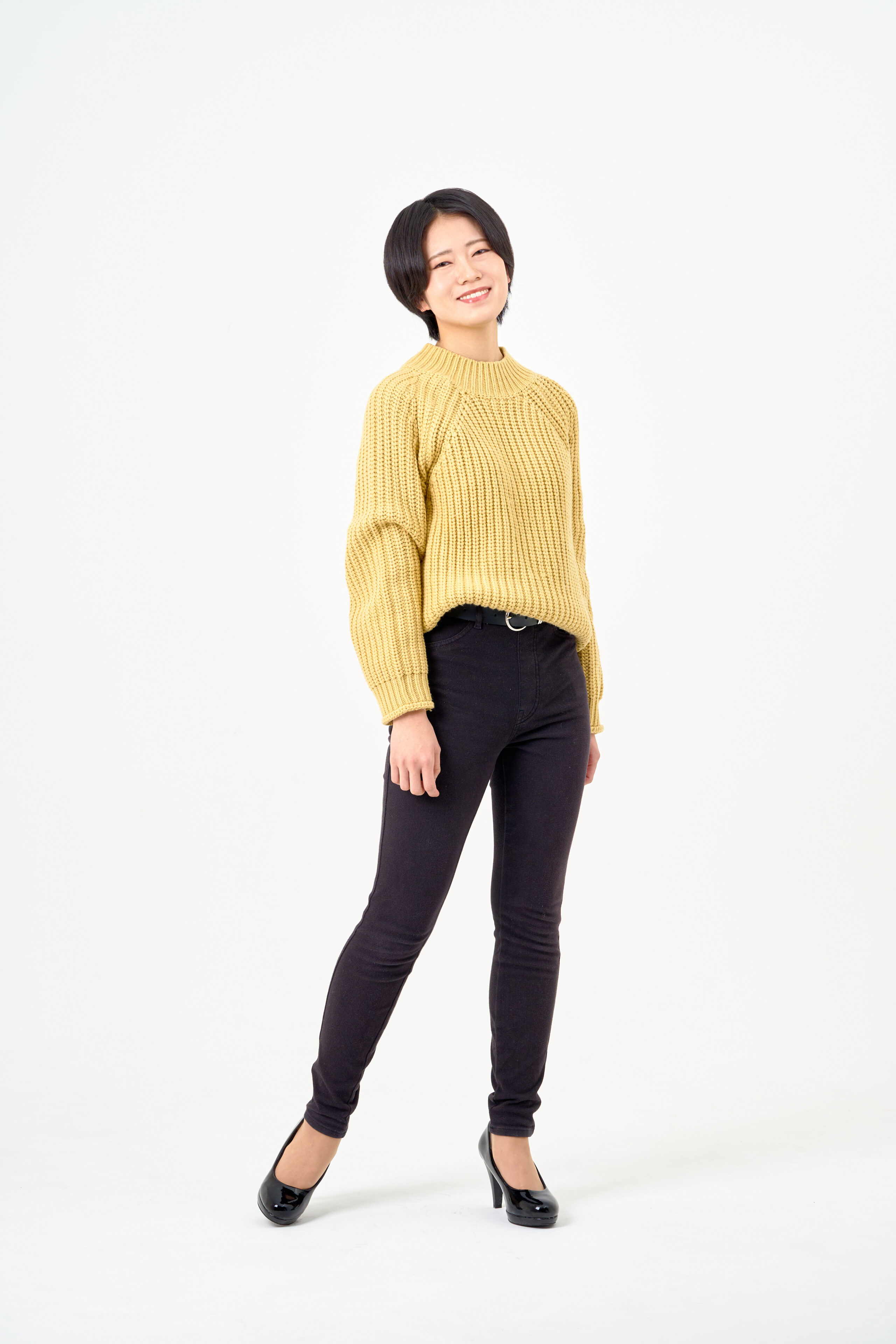 宣材写真の撮影です。黄緑色の衣装に合わせて、明るい表情が伝わるよう、柔らかいライティングで撮影させていただきました。