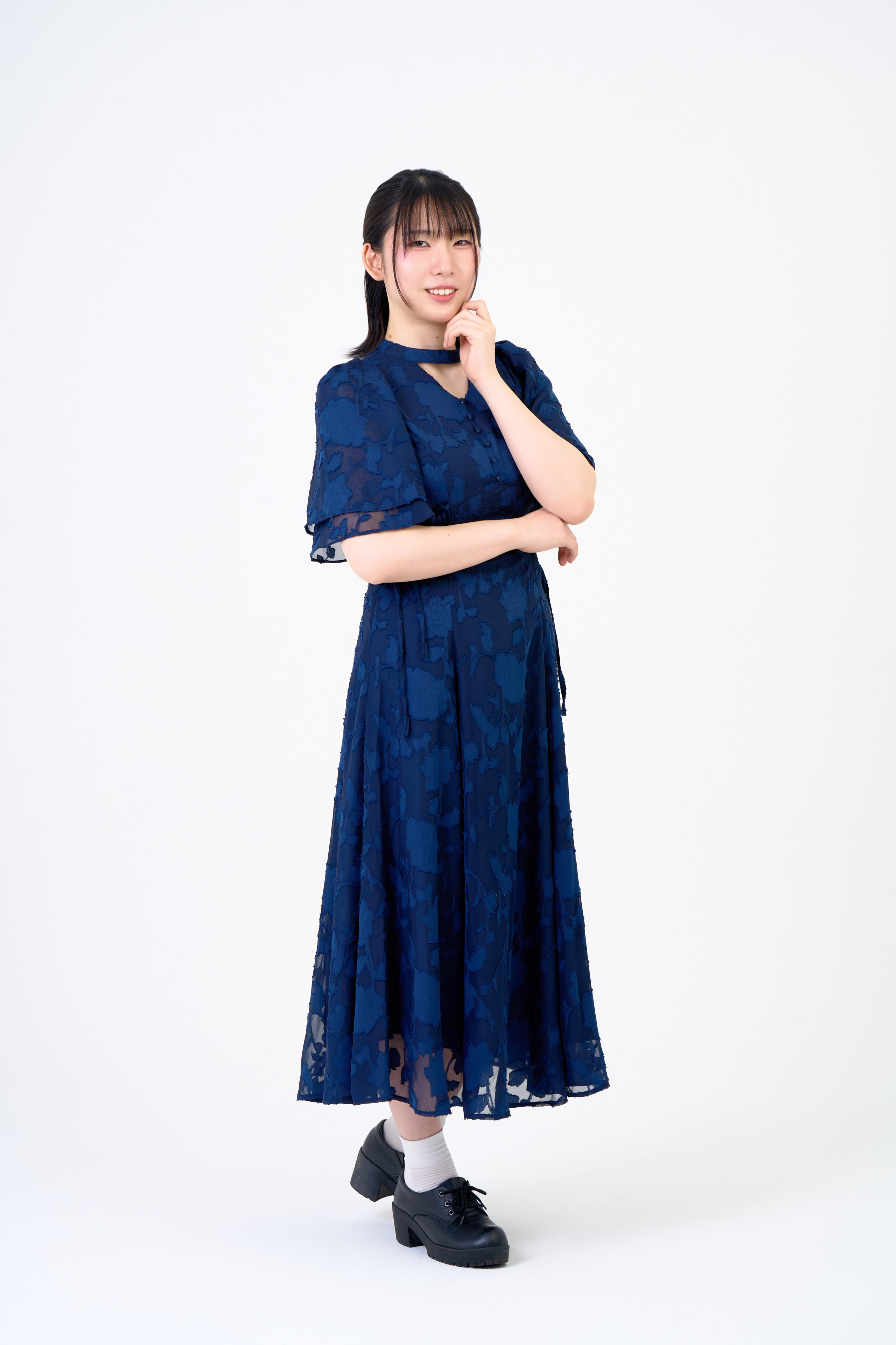 声優の方の宣材写真です。華やかさをコンセプトに、白背景で丁寧にライティングを施しました。艶っぽさを感じさせる雰囲気も演出し、洗練された一枚に仕上げています。