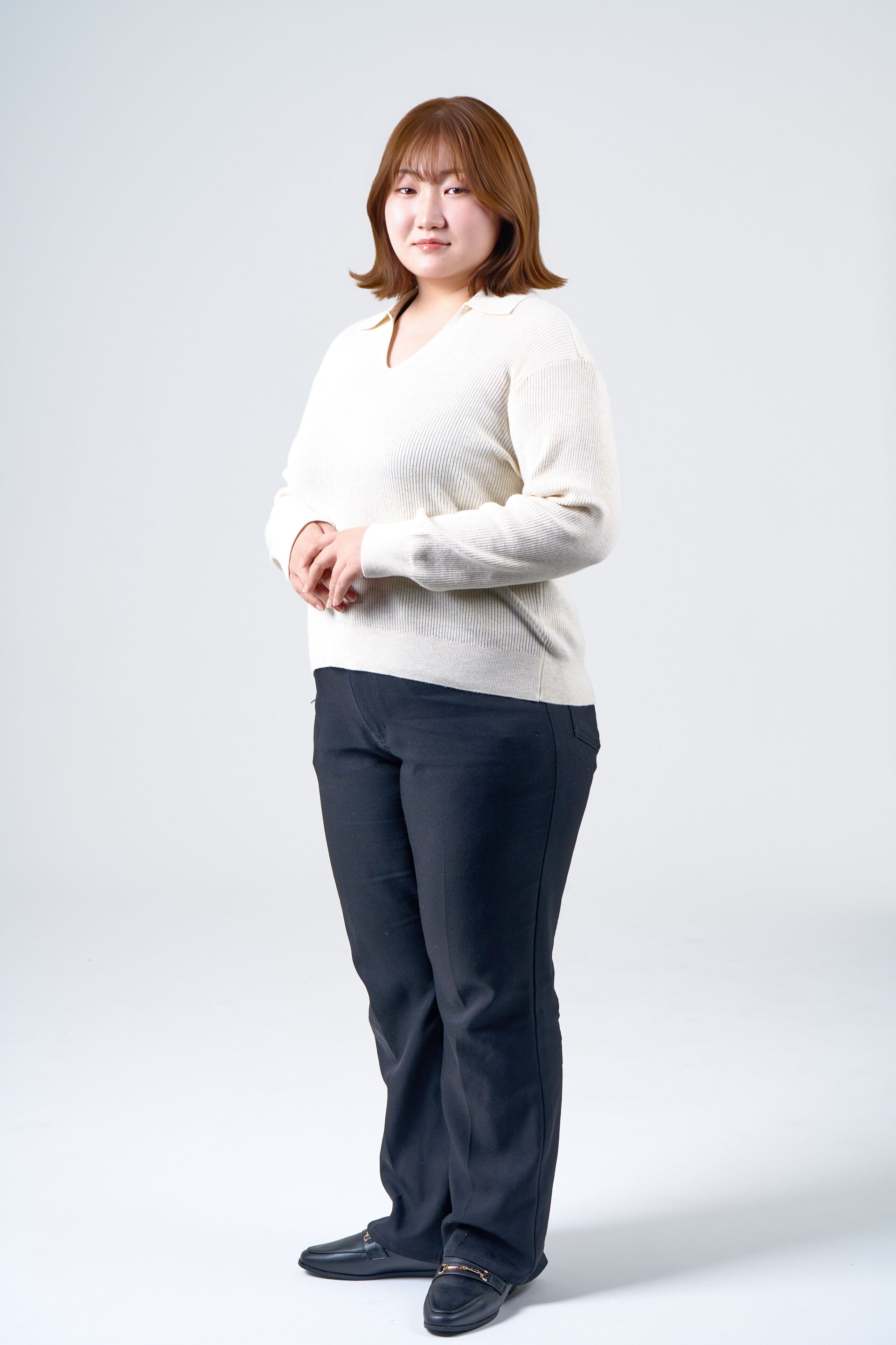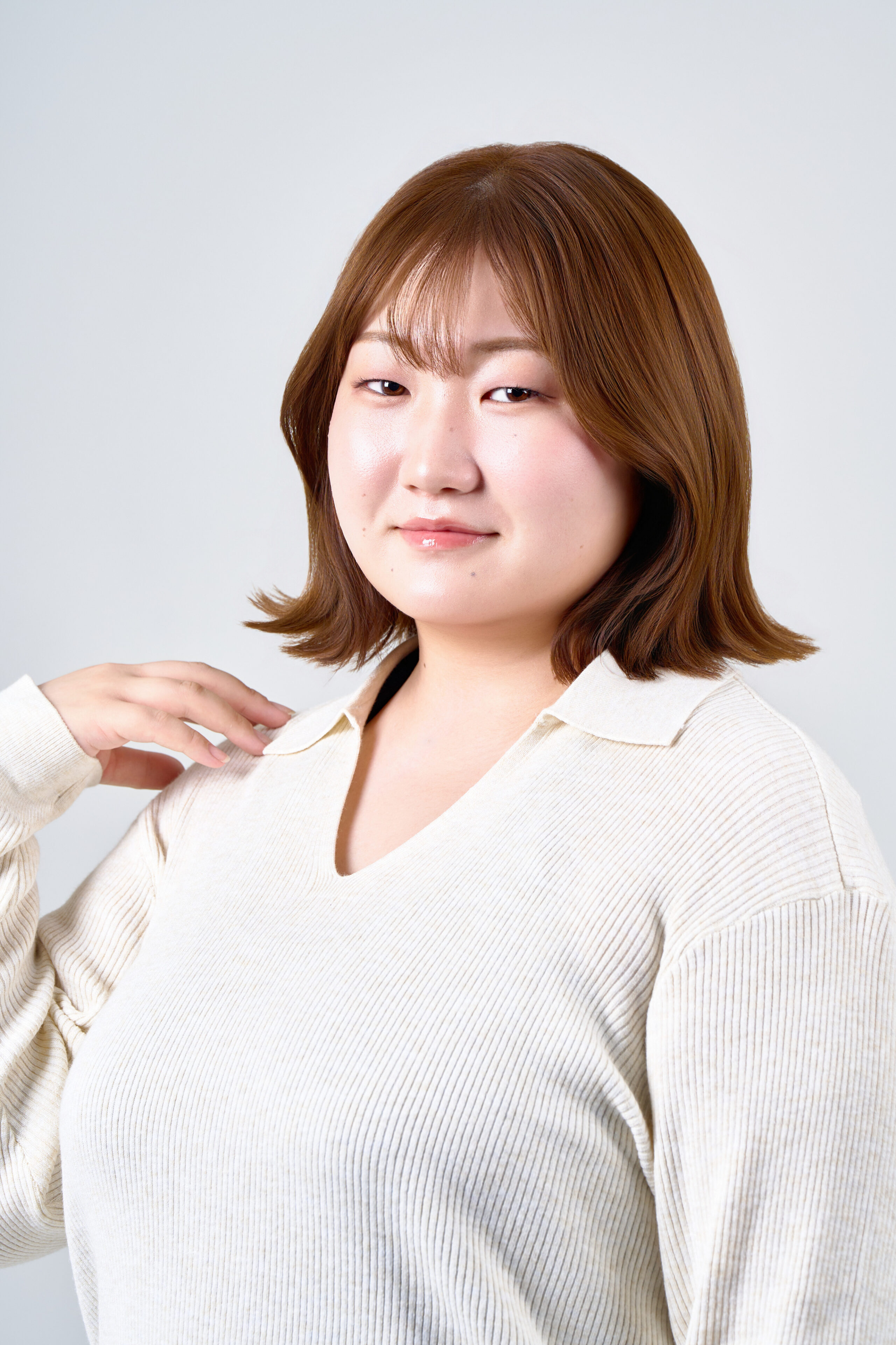 メイクは血色よく魅せるためピンク系でまとめました。前髪や顔周りの毛にゆるやかな曲線を持たすことで、お顔の印象をより引き立て、やわらかなイメージを引き出しています。