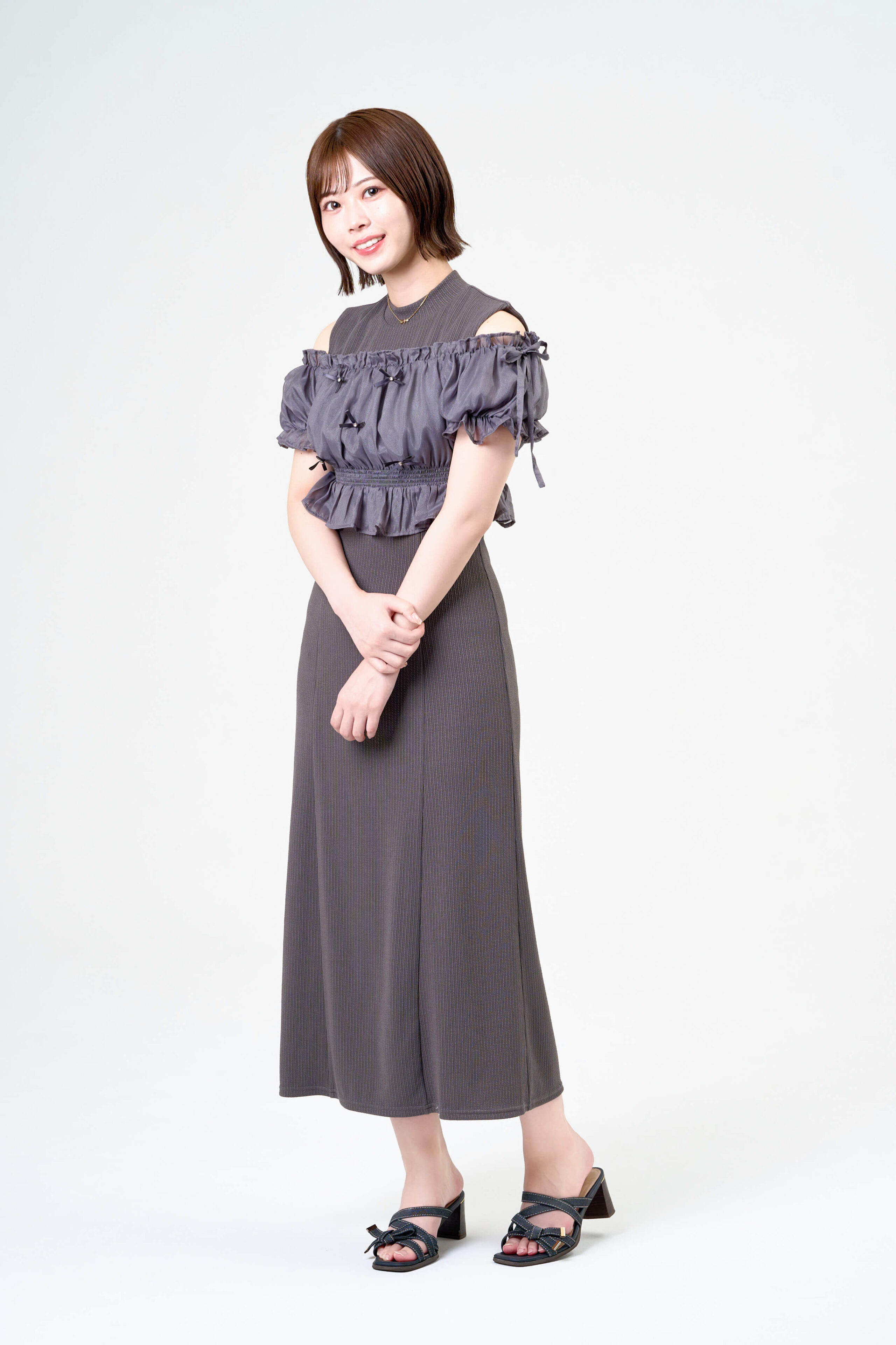 宣材写真の撮影です。明るい雰囲気を目指し、フレッシュなライティングを使用しました。ご本人の魅力を引き出すために、手先や足先を意識したポージングをご提案し、自然体でありながら印象的な一枚に仕上げています。