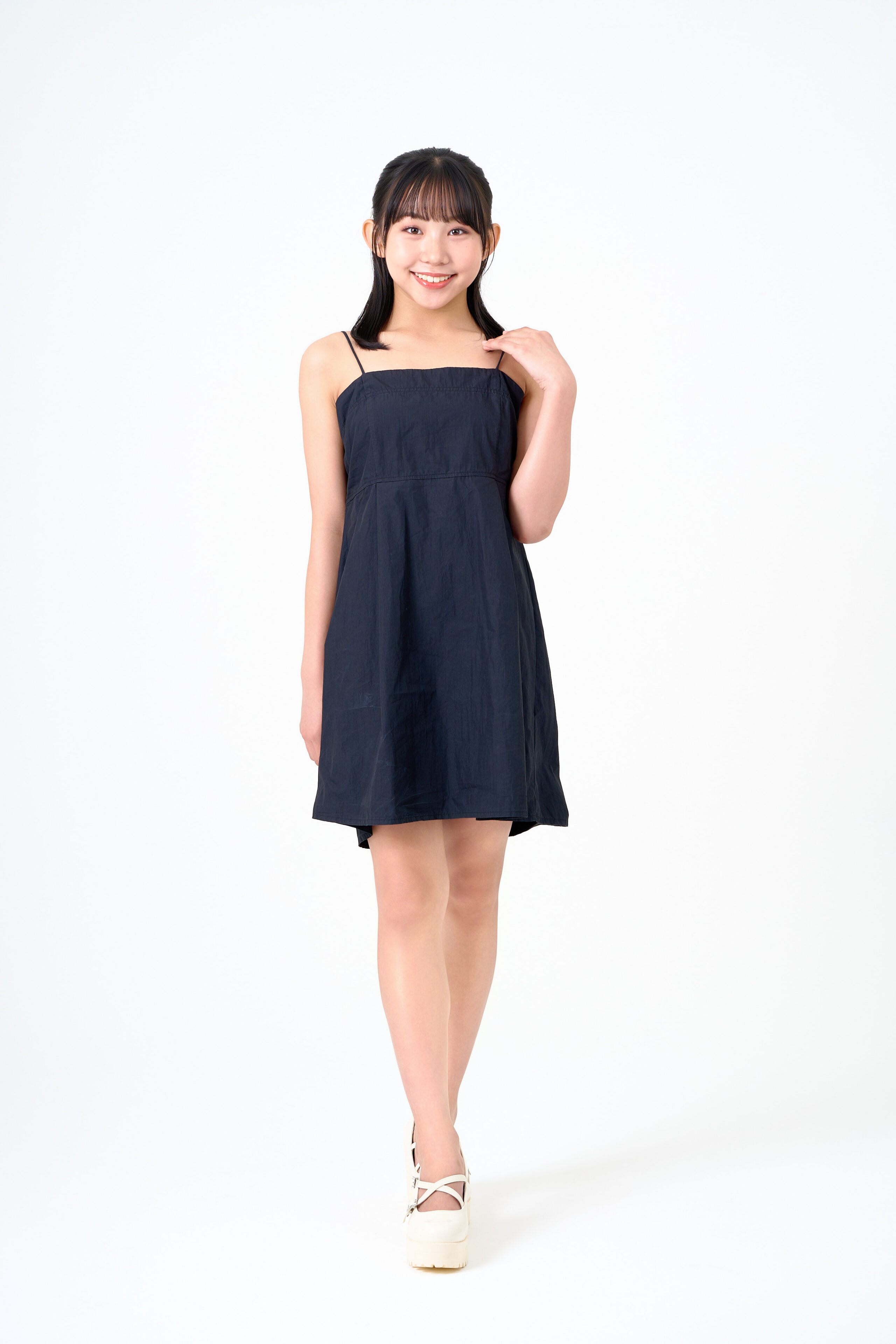 宣材写真の撮影です。可愛らしさをコンセプトに、白背景で丁寧にライティングを施しました。ポージングはシンプルに整え、笑顔を引き出し、本人らしさがしっかり伝わる一枚に仕上げています。